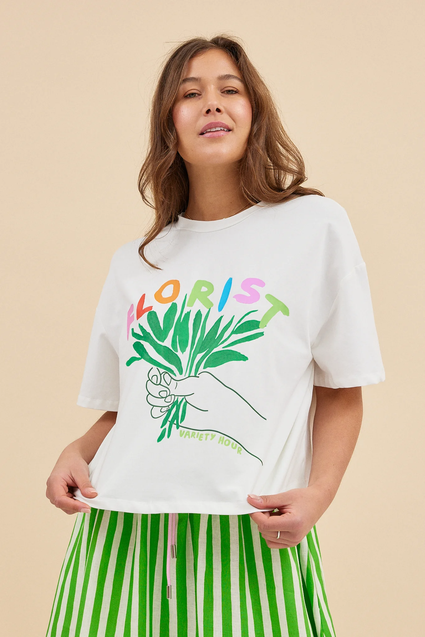 Fresh, fun, and full of color, this tee brings together food prints and floral accents. A perfect choice to brighten up your outfit with a touch of humor.